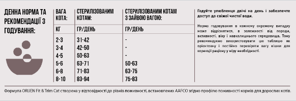 Ось чому ми рекомендуємо використовувати цю таблицю як орієнтовану і постійно перевіряти вагу кішки для корекції раціону за потребою. Годуйте кішку 2 рази на добу і забезпечте їй постійний доступ до свіжої питної води.
